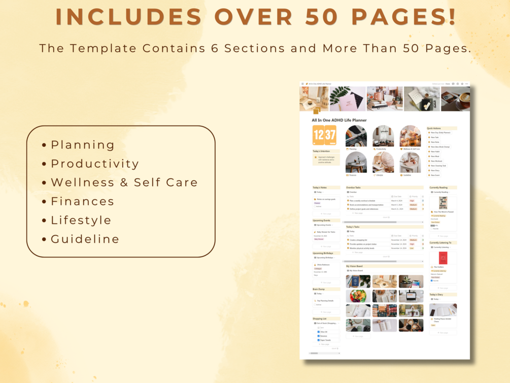 Start planning with ease, amplify your productivity, and bring peace to your routine with the Notion ADHD Life Planner—the ultimate all-in-one solution for personal growth and organization.