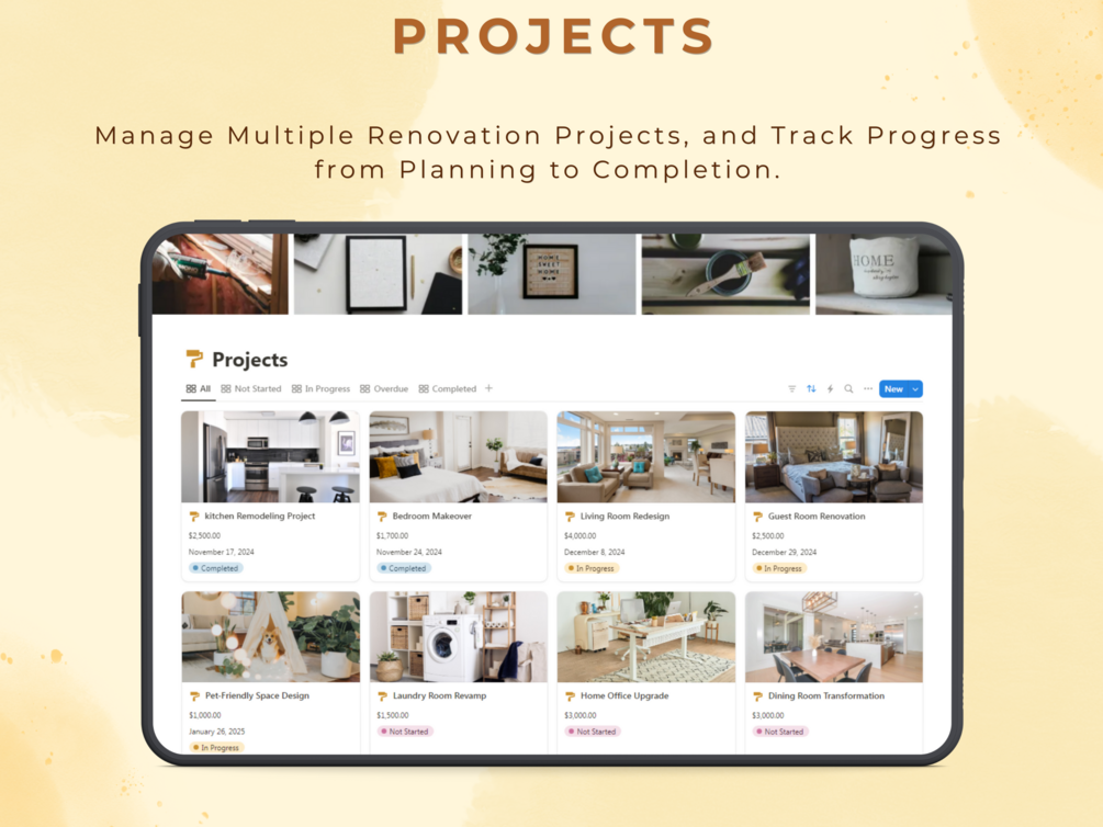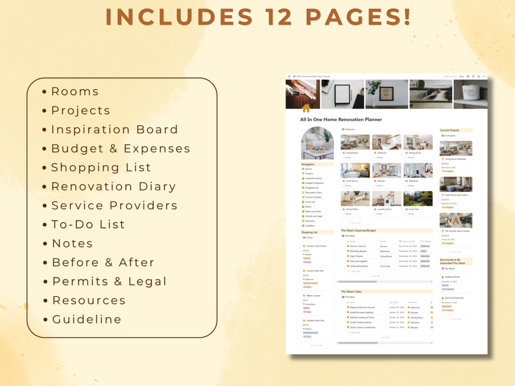 Transform your renovation dreams into reality with this All-in-One Notion Home Renovation Planner! Whether you’re a beginner embarking on your first DIY remodel or an experienced renovator tackling advanced projects, this planner has everything you need to stay organized and stress-free.