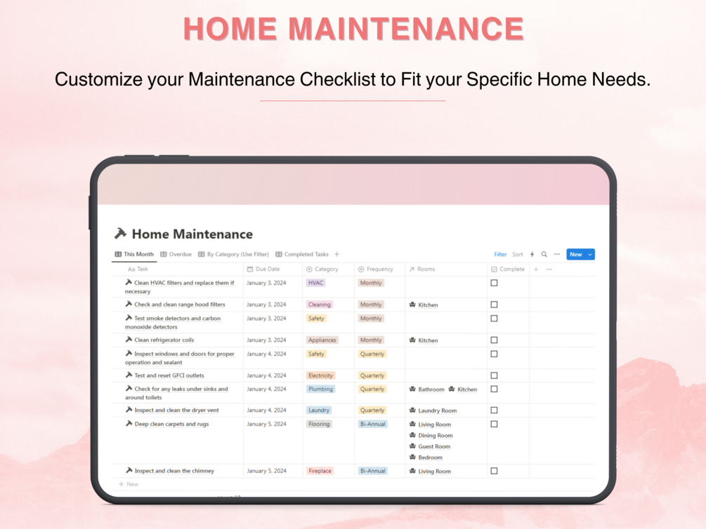 Take control of your home and transform it into a well-oiled machine of organization. Whether you're a busy professional, a parent juggling multiple responsibilities, or simply someone seeking a more structured lifestyle, our Notion Household Planner Template is your key to a harmonious and efficient home. Invest in the future of your household today and embark on a journey towards stress-free living.